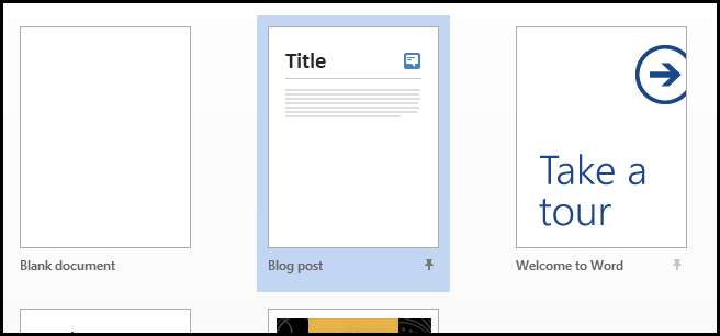 Όταν ξεκινάτε το Word, θα πρέπει να βλέπετε ένα πρότυπο δημοσίευσης ιστολογίου κάπου κοντά στο πάνω μέρος της οθόνης. Αυτό είναι το πρότυπο που θα μας επιτρέψει να δημοσιεύσουμε το περιεχόμενο που δημιουργούμε στο ιστολόγιό μας. Συνεχίστε λοιπόν και κάντε διπλό κλικ πάνω του.