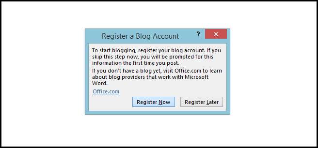 Την πρώτη φορά που θα χρησιμοποιήσετε το πρότυπο, θα πρέπει να δημιουργήσετε έναν λογαριασμό ιστολογίου, ώστε το Word να γνωρίζει πού και πώς να δημοσιεύσει το περιεχόμενό σας. Αυτό είναι πολύ σημαντικό, διότι διαφορετικές πλατφόρμες ιστολογίων απαιτούν τη διαφορετική μορφοποίηση των πληροφοριών.
