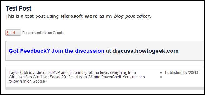 Στη συνέχεια, μπορείτε απλά να δημιουργήσετε μια ανάρτηση ιστολογίου χρησιμοποιώντας όλες τις γνωστές επιλογές επεξεργασίας που έχετε συνηθίσει όταν εργάζεστε στο Microsoft Word.