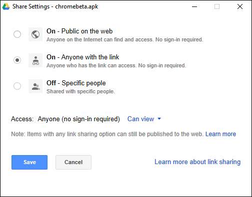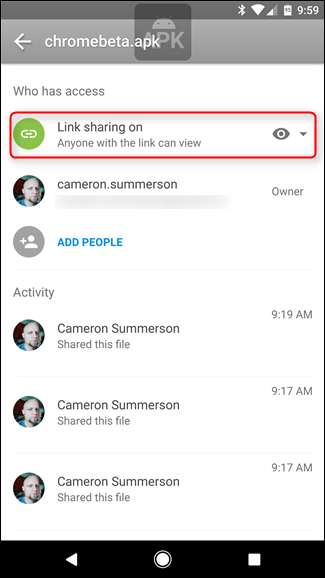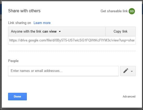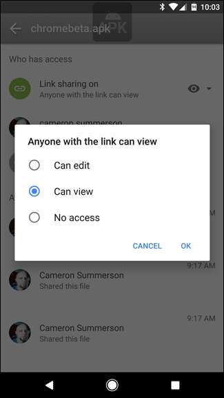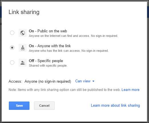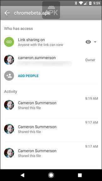 Ναι, αυτό είναι πολύ χρήσιμο όταν το μόνο που κάνετε είναι να μοιραστείτε ένα απλό αρχείο. Τα καλά νέα είναι ότι η Google κάνει το μεγαλύτερο μέρος εδώ, και η προεπιλεγμένη ενέργεια κοινής χρήσης είναι αρκετά ιδιωτική (ο σύνδεσμός σας είναι προσβάσιμος από οποιονδήποτε, αλλά μόνο αν γνωρίζουν τον σύνδεσμο), ώστε να μπορείτε να μοιράζεστε γρήγορα και αποτελεσματικά αρχεία.