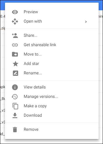 Τώρα που έχετε τον κοινόχρηστο σύνδεσμό σας, αναρωτιέστε πιθανώς πού βρίσκονται όλες οι επιλογές. Σε αντίθεση με τα Windows ή το Chrome OS, αυτές οι επιλογές δεν είναι άμεσα διαθέσιμες από το διάλογο κοινής χρήσης. Αντ 'αυτού, είναι κρυμμένα στο μενού Drive του αρχείου.