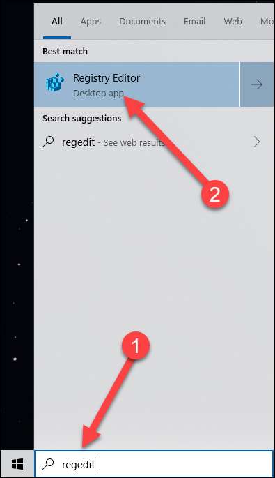 Για να ξεκινήσετε, ανοίξτε τον Επεξεργαστή Μητρώου κάνοντας κλικ στο Έναρξη και πληκτρολογώντας "regedit". Κάντε διπλό κλικ στη συντόμευση "Επεξεργαστής μητρώου" που εμφανίζεται (ή πατήστε Enter) και κάντε κλικ στο "Ναι" στη γραμμή εντολών UAC.