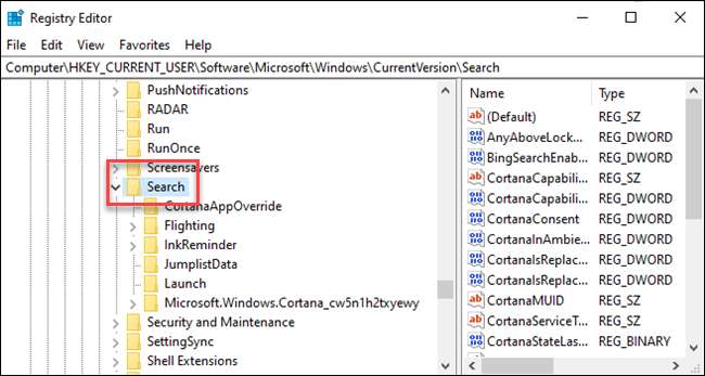 HKEY_CURRENT_USER \ ΛΟΓΙΣΜΙΚΟ \ Microsoft \ Windows \ CurrentVersion \ Αναζήτηση