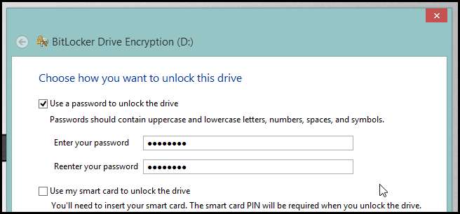 Κατά την εκκίνηση του οδηγού θα πρέπει να επιλέξετε το πλαίσιο ελέγχου "Χρήση κωδικού πρόσβασης για ξεκλείδωμα της μονάδας δίσκου".