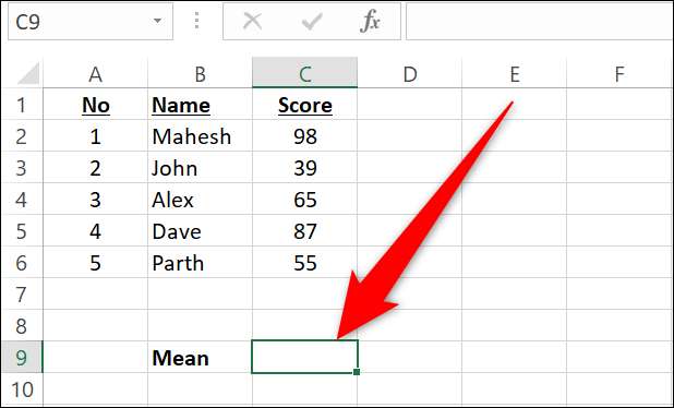 Στο παράδειγμα μας, θα βρούμε τον μέσο όρο για τις τιμές στη στήλη "βαθμολογίας" και να εμφανίσετε την απάντηση στο κελί C9.