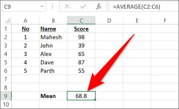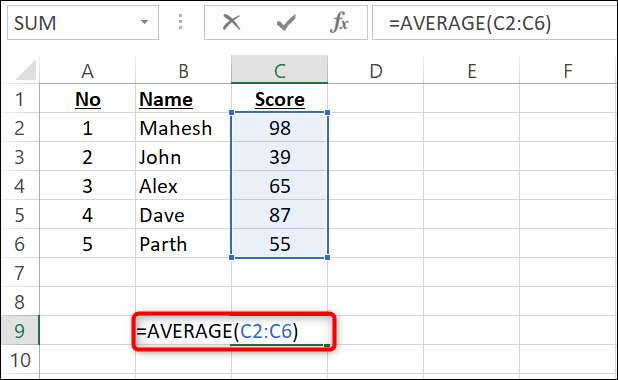 Θα μπορούσες Πληκτρολογήστε φόρμουλες Όπως και εσείς, αλλά η μέση λειτουργία του Excel σας βοηθά να εκτελέσετε αυτόν τον υπολογισμό με ευκολία.