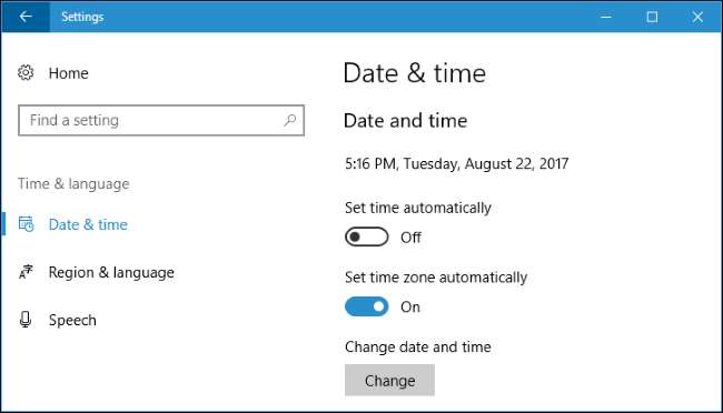 Εάν θέλετε να το κάνετε αυτό, θα θελήσετε πρώτα να απενεργοποιήσετε τη δυνατότητα ενημέρωσης ώρας Διαδικτύου στα Windows. Αυτό διασφαλίζει ότι τα Windows δεν θα ρυθμίσουν σωστά το ρολόι όταν προσπαθούν να συγχρονίσουν την τρέχουσα ώρα από το Διαδίκτυο. Στα Windows 10, μεταβείτε στις Ρυθμίσεις> Ώρα και γλώσσα και απενεργοποιήστε το "Αυτόματη ρύθμιση χρόνου". Στα Windows 7, κάντε δεξί κλικ στο ρολόι συστήματος στη γραμμή εργασιών και επιλέξτε "Προσαρμογή ημερομηνίας / ώρας". Κάντε κλικ στην καρτέλα "Ώρα Διαδικτύου", κάντε κλικ στο κουμπί "Αλλαγή ρυθμίσεων", καταργήστε την επιλογή "Συγχρονισμός με διακομιστή ώρας Διαδικτύου" και κάντε κλικ στο "OK".