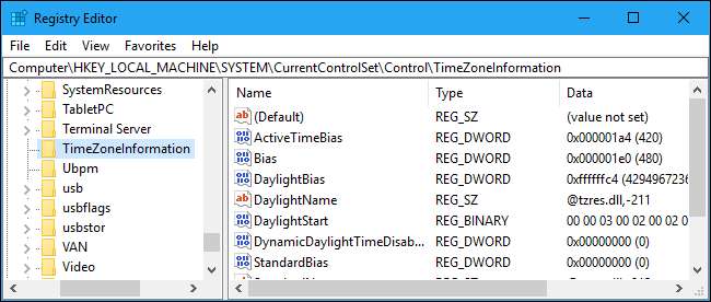 HKEY_LOCAL_MACHINE \ System \ CurrentControlSet \ Control \ TimeZoneInformation