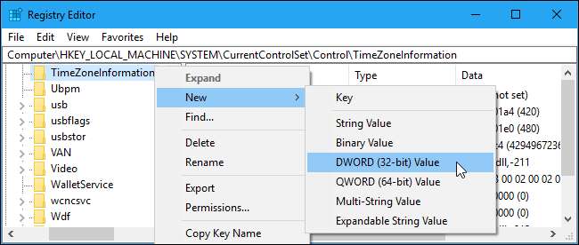 Κάντε δεξί κλικ στο πλήκτρο "TimeZoneInformation" και επιλέξτε New> DWORD (32-bit) Value.