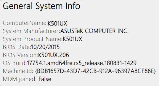 Αυτή η ενότητα περιέχει λεπτομέρειες σχετικά με τον υπολογιστή σας — όνομα υπολογιστή, κατασκευαστή, όνομα προϊόντος συστήματος, ημερομηνία και έκδοση BIOS και ούτω καθεξής.