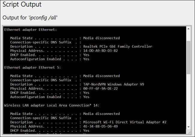 Θα δείτε επίσης την έξοδο πολλών εντολών γραμμής εντολών που περιλαμβάνονται στην αναφορά. Αυτά παρέχουν ακόμη περισσότερες λεπτομέρειες σχετικά με τους προσαρμογείς δικτύου και τις πληροφορίες WLAN.