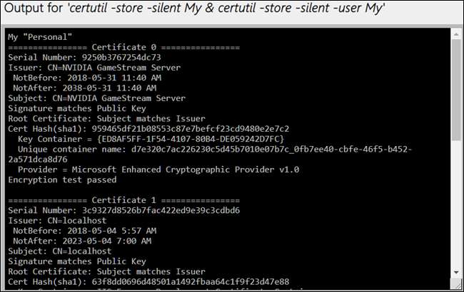 Η εντολή εμφανίζει μια λίστα με όλα τα τρέχοντα πιστοποιητικά που είναι αποθηκευμένα στον υπολογιστή σας.