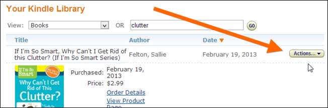 Βρείτε το βιβλίο που θέλετε να επιστρέψετε στη λίστα και, στη συνέχεια, δείτε το κουμπί Ενέργειες στη δεξιά πλευρά.