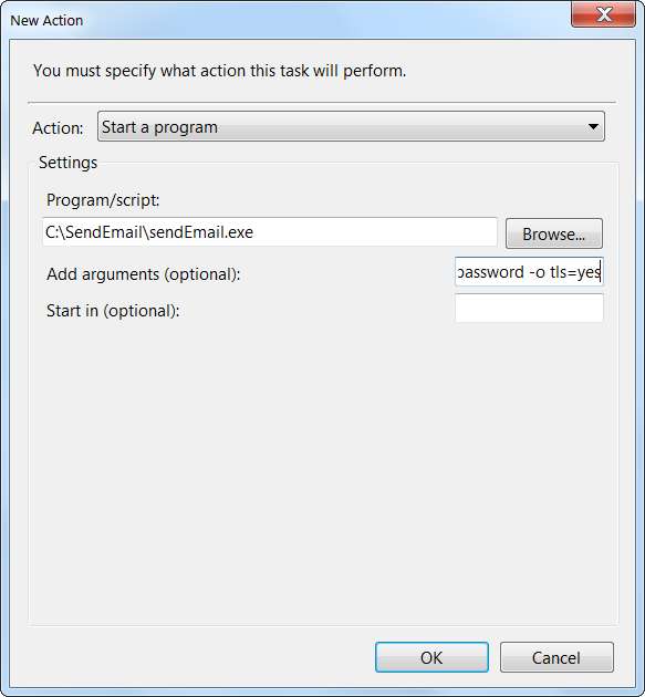Ο προγραμματιστής εργασιών περιλαμβάνει την επιλογή "αποστολή email". Δυστυχώς, αυτό δεν θα λειτουργήσει σωστά για τους περισσότερους χρήστες - εάν έχετε διακομιστή SMTP που απαιτεί έλεγχο ταυτότητας, οι λεπτομέρειες ελέγχου ταυτότητας θα πρέπει να είναι ίδιες με τις λεπτομέρειες του λογαριασμού χρήστη των Windows. Η ενσωματωμένη λειτουργία ηλεκτρονικού ταχυδρομείου ενδέχεται να είναι χρήσιμη για χρήστες με διακομιστές SMTP που εκτελούνται σε τοπικούς υπολογιστές τους, αλλά δεν θα λειτουργήσει σωστά εάν χρησιμοποιείτε το Gmail ή άλλη υπηρεσία ηλεκτρονικού ταχυδρομείου τρίτου μέρους.