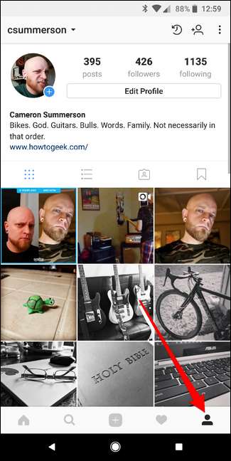 Αρχικά, ανοίξτε την εφαρμογή Instagram και μετά μεταβείτε στο προφίλ σας πατώντας το τελευταίο εικονίδιο στη γραμμή πλοήγησης.
