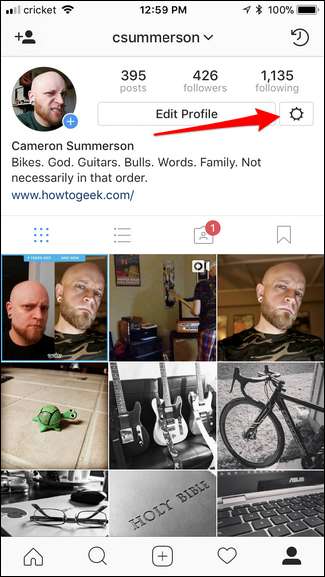 Θα πρέπει να μεταβείτε στο μενού "Ρυθμίσεις" - στο iOS, είναι ένα μικρό γρανάζι δίπλα στο κουμπί "Επεξεργασία προφίλ". Σε Android, πατήστε τα τρία κουμπιά στην επάνω δεξιά γωνία.