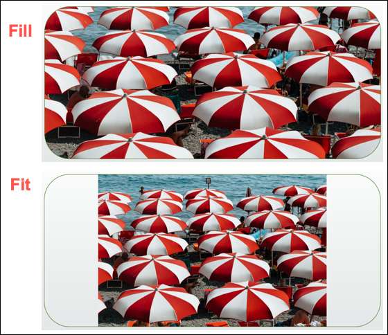 Όταν "γεμίζετε" ένα σχήμα με μια εικόνα, αυτό Ρυθμίζει το μέγεθος της εικόνας για να ταιριάζει με το ύψος ή το πλάτος του σχήματος, όποιο από τα δύο είναι μεγαλύτερο. Όταν "ταιριάζει" ένα σχήμα με μια εικόνα, αυτό ρυθμίζει το μέγεθος της εικόνας έτσι ώστε τόσο το ύψος όσο και το πλάτος να ταιριάζουν με το σχήμα.