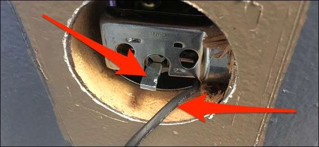 Βεβαιωθείτε ότι το καλώδιο τροφοδοτεί μέσω της τρύπας της πόρτας και ότι το προεξέχον άκρο ευθυγραμμίζεται και ολισθαίνει στη μεσαία οπή του μανδάλου της πόρτας.
