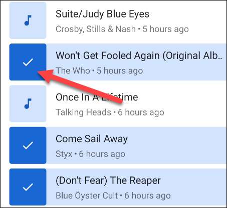 Αγγίξτε τα εικονίδια μουσικής ή πατήστε ένα τραγούδι για να το επιλέξετε. Επιλέξτε όλα τα τραγούδια που θέλετε να προσθέσετε στη λίστα αναπαραγωγής.