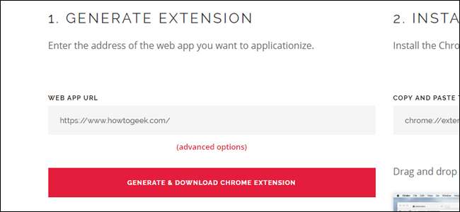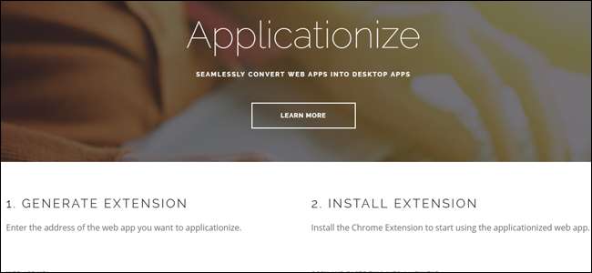 Αππλικατιονιζε.με μετατρέπει οποιονδήποτε τυπικό ιστότοπο σε αρχείο CRX με δυνατότητα λήψης, το οποίο στη συνέχεια μπορεί να "εγκατασταθεί" στο Chrome σαν να ήταν επέκταση του Chrome. Δεν είναι - η "εφαρμογή" θα είναι μόνο ο ιστότοπος που θα επιλέξετε, στο δικό του λεπτό παράθυρο με σύνδεσμο. Ωστόσο, είναι ένα χρήσιμο μικρό hack.