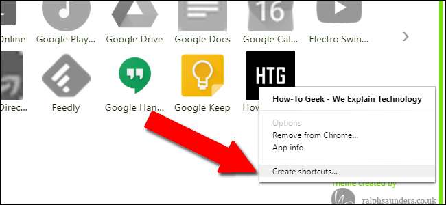 Κάντε δεξί κλικ στο νέο εικονίδιο και, στη συνέχεια, κάντε κλικ στην επιλογή "Δημιουργία συντομεύσεων". Στα Windows, θα ρωτήσει αν θέλετε να βρίσκονται στην επιφάνεια εργασίας, στο μενού Έναρξη ή και στα δύο. Για παράδειγμα, θα χρησιμοποιήσουμε την επιφάνεια εργασίας, αλλά δεν έχει σημασία ποια θα επιλέξετε. Σε macOS, θα πραγματοποιήσει λήψη στο φάκελο "Εφαρμογές Chrome", ο οποίος θα ανοίξει αυτόματα.