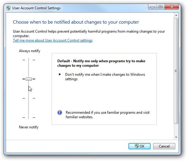 Εάν είστε ισχυρός χρήστης και κάνετε πολλές αλλαγές στο σύστημά σας, τότε σίγουρα θα σας αρέσει το γεγονός ότι μπορείτε να προσαρμόσετε τις ρυθμίσεις UAC ευκολότερα στα Windows 7 από τα Vista. Εάν εξακολουθείτε να χρησιμοποιείτε Vista, βεβαιωθείτε και ανατρέξτε στον οδηγό του Geek 4 τρόποι για να κάνετε το UAC λιγότερο ενοχλητικό στα Vista .