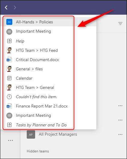 Οι ομάδες της Microsoft μπορούν να γεμίσουν γρήγορα με ομάδες, κανάλια, καρτέλες, συνομιλίες και συναντήσεις. Θυμηθείτε από το πού είδατε κάτι μπορεί να είναι δύσκολο, οπότε υπάρχει μια αποκλειστική λίστα με τις τελευταίες 12 θέσεις που επισκεφθήκατε.