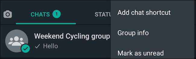 Εναλλακτικά, μπορείτε να πατήσετε καιρό το όνομα της ομάδας στην καρτέλα "chats", πατήστε το εικονίδιο μενού τριών dot στην επάνω δεξιά γωνία και από την ακόλουθη αναπτυσσόμενη αρχή, το κεφάλι σε "Info Group" για να δείτε τη σελίδα του προφίλ της ομάδας.
