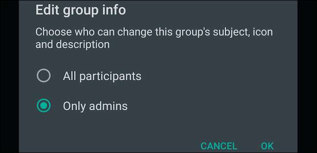 Υπάρχουν επίσης και άλλα, παρόμοια προνόμια που οι διαχειριστές του Whatsapp Group μπορούν να επωφεληθούν. Για παράδειγμα, οι διαχειριστές μπορούν να ανακαλέσουν την ικανότητα των συμμετεχόντων να στείλουν μηνύματα σε μια ομαδική συνομιλία αν, για παράδειγμα, θα ήθελαν να μεταδώσουν μια σημαντική ανακοίνωση και δεν θέλουν να ταφεί κάτω από τον κατακλυσμό άλλων φλυτζανιών.