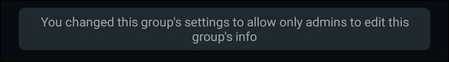Μόλις τεθεί σε ισχύ αυτή την αλλαγή, το WhatsApp θα ειδοποιήσει τους συμμετέχοντες στον Όμιλο γι 'αυτό με μια σημείωση στη συζήτηση. Η επιλογή επεξεργασίας του ονόματος, της περιγραφής και του εικονιδίου του Ομίλου απλώς θα εξαφανιστεί από τα τηλέφωνα των μελών.