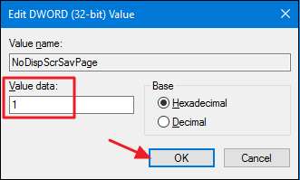 Στη συνέχεια, θα δημιουργήσετε μια νέα τιμή μέσα στο κλειδί συστήματος. Κάντε δεξί κλικ στο πλήκτρο System και επιλέξτε New> DWORD (32-bit) Value. Ονομάστε τη νέα τιμή "NoDispScrSavPage" και μετά κάντε διπλό κλικ στη νέα τιμή για να ανοίξετε το παράθυρο ιδιοτήτων της.