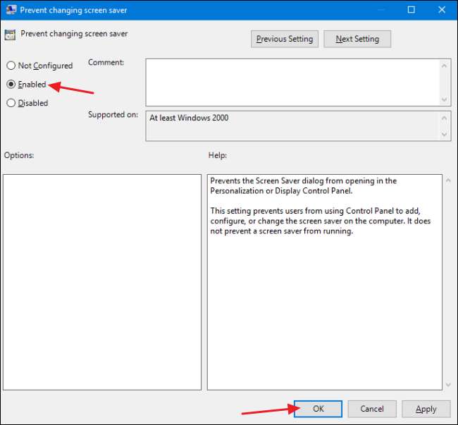 Όταν ολοκληρώσετε την αλλαγή της ρύθμισης, μπορείτε να πραγματοποιήσετε έξοδο από το πρόγραμμα επεξεργασίας πολιτικής τοπικής ομάδας. Οι αλλαγές ισχύουν αμέσως, οπότε δεν χρειάζεται να κάνετε επανεκκίνηση του υπολογιστή ή οτιδήποτε άλλο. Για να αντιστρέψετε την αλλαγή αργότερα, απλώς επιστρέψτε στην ίδια ρύθμιση "Αποτροπή αλλαγής προφύλαξης οθόνης" και αλλάξτε την ξανά σε "Χωρίς διαμόρφωση".