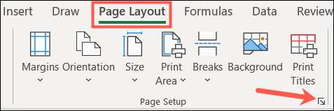 Στα Windows, μεταβείτε στην καρτέλα Διάταξη σελίδας και κάντε κλικ στο βέλος στο κάτω δεξί μέρος της ενότητας εγκατάστασης της σελίδας της κορδέλας.