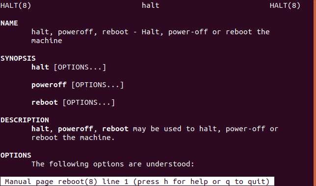 Αυτές οι εντολές εκτελούν την ενέργεια που προτείνει το όνομά τους. Ωστόσο, καθένας από αυτούς θα αποδεχτεί επιλογές γραμμής εντολών για να κάνει οποιοδήποτε από αυτά να πραγματοποιήσει επανεκκίνηση, διακοπή ή διακοπή ισχύος. Αλλά γιατί συγχέουμε τα πράγματα; Αυτές οι εντολές χρησιμοποιούνται καλύτερα στην ονομαστική τιμή.