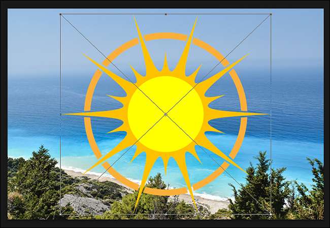 Θα δείτε τώρα λαβές γύρω από στρώμα σας. Κάντε κλικ σε μία από αυτές τις λαβές και στη συνέχεια σύρετε με το ποντίκι ή το trackpad για να αλλάξετε το μέγεθος στρώμα σας. Μη διστάσετε να παίζουν με αυτά τα χερούλια όπως θέλετε.