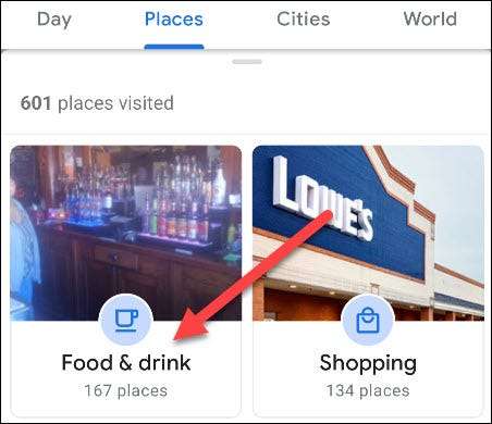 Θα βρείτε τους επισκέψεις σας οργανωμένες σε μια δέσμη κατηγοριών όπως "ψώνια" και "αξιοθέατα". Αυτός που μας ενδιαφέρει είναι "Τρόφιμα & amp; Ποτό."