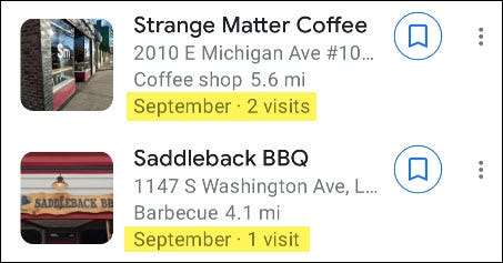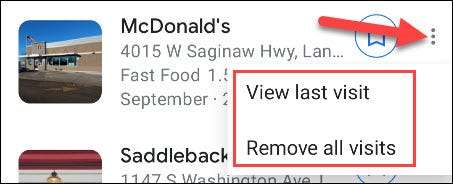 Δεύτερον, μπορείτε να πατήσετε το εικονίδιο μενού τριών dot δίπλα σε μια τοποθεσία για να δείτε την τελευταία επίσκεψή σας ή να καταργήσετε όλες τις επισκέψεις.