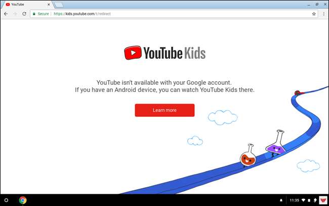 Ο αποκλεισμός του YouTube είναι διπλά ανόητος επειδή αντ 'αυτού προσπαθεί να ανακατευθύνει στο YouTube Kids, το οποίο υπάρχει μόνο σε φόρμα εφαρμογής και δεν είναι διαθέσιμο σε λογαριασμό Family Link επειδή δεν υπάρχει Google Play Store.