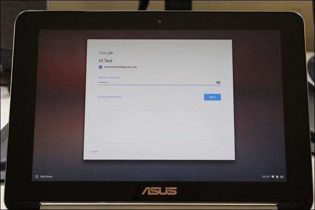 Ξεκινήστε με τη σύνδεση με το όνομα χρήστη και τον κωδικό πρόσβασης για το λογαριασμό που μόλις δημιουργήσατε στο τηλέφωνό σας. Μόλις εισαγάγετε τα διαπιστευτήρια, το Chrome OS θα επισημάνει τον λογαριασμό ως θυγατρικό λογαριασμό στο Family Link και θα ζητήσει από έναν γονέα να παραχωρήσει άδεια εισόδου.