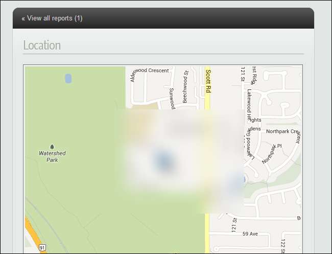 Μόλις φτάσει μια αναφορά, θα τη δείτε στην καρτέλα Αναφορές. Η αναφορά περιλαμβάνει τις πληροφορίες που επιλέξατε, όπως τη γεωγραφική τοποθεσία του φορητού υπολογιστή, την κατάσταση του δικτύου και τη διεύθυνση IP και ένα στιγμιότυπο οθόνης της επιφάνειας εργασίας του υπολογιστή και της λήψης κάμερας web του χρήστη. Αυτές οι πληροφορίες μπορεί να σας βοηθήσουν να επαναφέρετε τον φορητό υπολογιστή ή μπορεί να είναι χρήσιμα στοιχεία όταν αναφέρετε τον φορητό υπολογιστή ως κλεμμένο.
