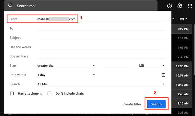 Ένας άλλος τρόπος για μηνύματα ηλεκτρονικού ταχυδρομείου ταξινόμηση κατά αποστολέα στο Gmail είναι να χρησιμοποιήσετε μια προηγμένη αναζήτηση.