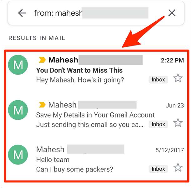 Αμέσως, το Gmail θα εμφανίσει όλα τα μηνύματα που έχετε λάβει από αυτόν τον αποστολέα.