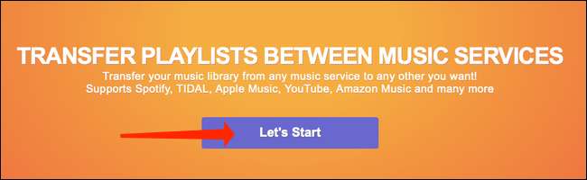 Για να ξεκινήσετε με porting λίστες αναπαραγωγής σας, ανοίξτε Συντονιστείτε μουσική μου σε οποιοδήποτε πρόγραμμα περιήγησης και επιλέξτε «Έναρξη Ας» στην αρχική σελίδα.
