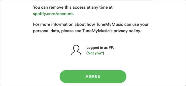 Θα δείτε ένα άλλο pop-up σας ζητάει να συνδεθείτε στο λογαριασμό σας Spotify. Μόλις συνδεθείτε, μπορείτε να διαβάσετε τι θα επιτρέπεται Συντονιστείτε μουσική μου να έχουν πρόσβαση, μετακινηθείτε προς τα κάτω και κάντε κλικ στο «Συμφωνώ» για να συνεχίσετε.