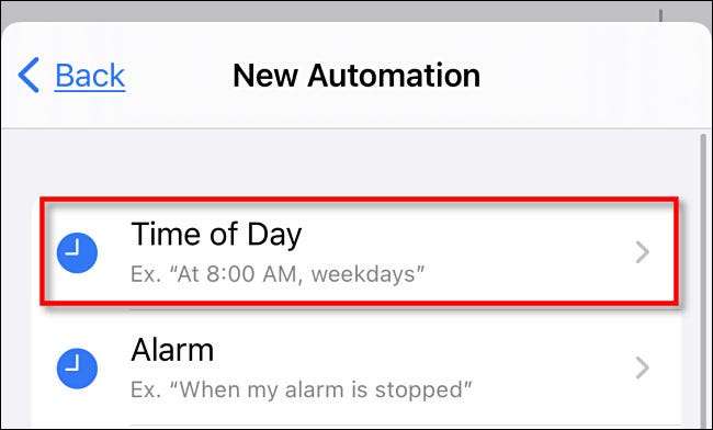 Στο μενού "Νέο αυτοματισμό", πατήστε "Χρόνος της ημέρας".