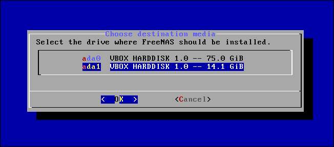 Επιλέξτε Εγκατάσταση / Αναβάθμιση όταν εμφανιστεί ο οδηγός εγκατάστασης και επιλέξτε τη μονάδα δίσκου στην οποία θέλετε να εγκαταστήσετε το FreeNAS. Τυχόν συνδεδεμένες μονάδες USB θα εμφανιστούν σε αυτήν τη λίστα.