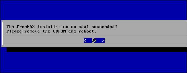Το πρόγραμμα εγκατάστασης θα γράψει τα αρχεία του λειτουργικού συστήματος FreeNAS στη μονάδα δίσκου που θα επιλέξετε. Η διαδικασία εγκατάστασης έχει πλέον ολοκληρωθεί - αφαιρέστε το CD (ή τη μονάδα USB, εάν εγκαταστήσατε από USB) και επανεκκινήστε τον υπολογιστή σας.