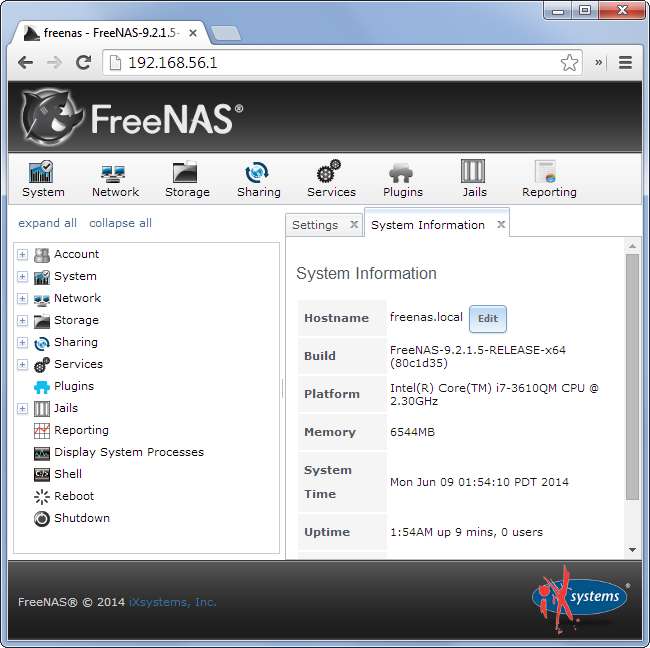 (Τώρα μπορείτε να αποσυνδέσετε την οθόνη σας από το πλαίσιο FreeNAS, εάν προτιμάτε. Δεν θα πρέπει πλέον να είναι απαραίτητο.)