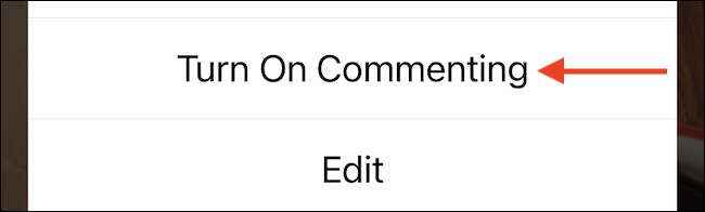 Αν αλλάξετε γνώμη αργότερα, μπορείτε να ενεργοποιήσετε ξανά τα σχόλια ανά πάσα στιγμή. Πατήστε το κουμπί μενού στην επάνω δεξιά γωνία της ανάρτησης Instagram και επιλέξτε το «Ενεργοποιήστε Σχολιάζοντας» επιλογή.