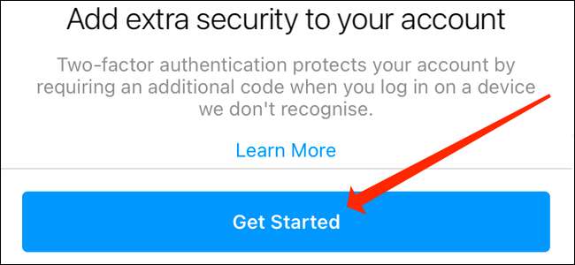 Θα φτάσει πλέον σελίδα ρύθμισης ταυτότητας δύο παραγόντων Instagram της. Πατήστε "Ξεκινήστε."